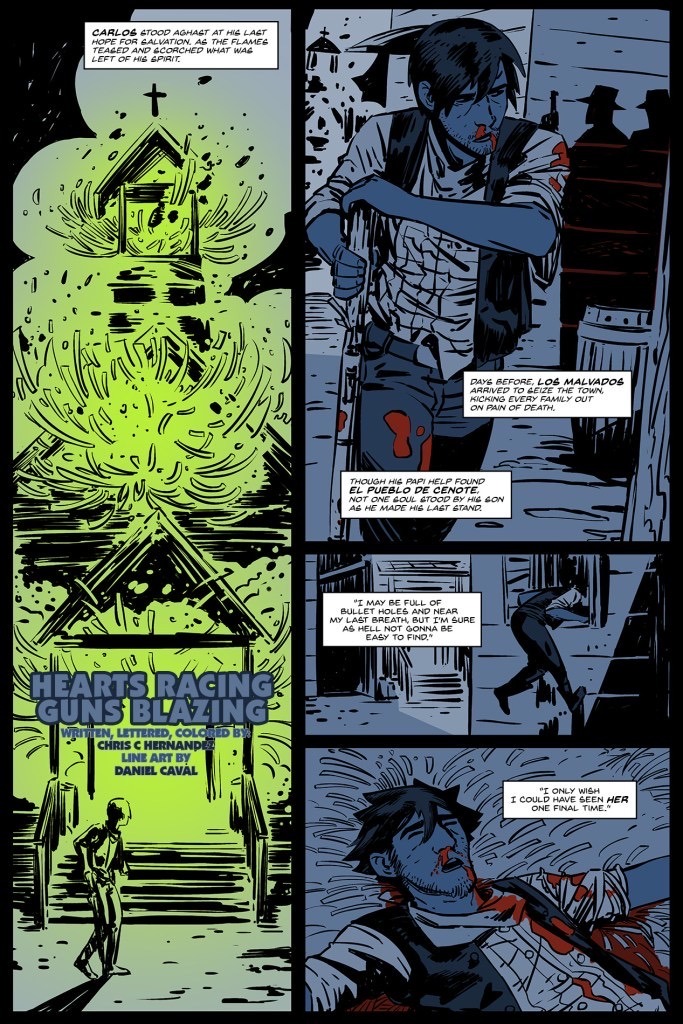 A 4 page comic short featuring a Latinx love story set in the old west.