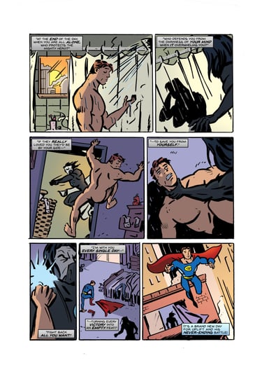 A 2 page comic short dealing with super heroes and mental illness. My first comic creation.