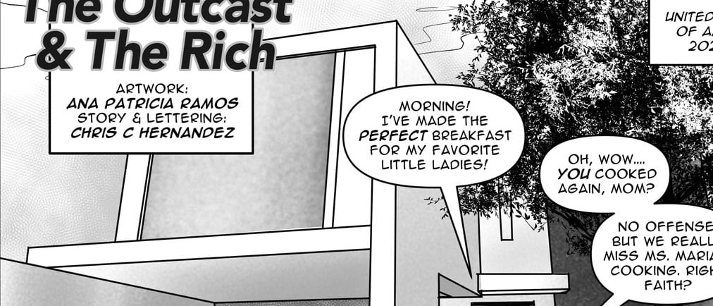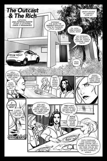 The Outcast And The Rich is a 7 page comic that was submitted for possible publication. It was rejected, however, I really enjoyed writing it.